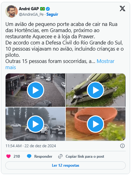 Um acidente aéreo em Gramado (RS) resultou na queda de um avião PA-42-1000 Cheyenne 400, modelo turboélice bimotor da Piper Aircraft. Na ocasião, dez pessoas da mesma família estavam a bordo.