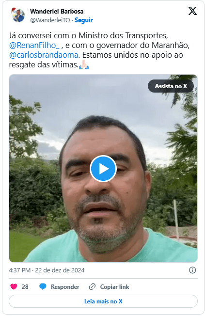 “Tivemos vítimas”, declarou. “Falei com o prefeito Wanderly Leite, nosso companheiro de Aguiarnópolis (TO). Ele disse ter perdido uma pessoa da cidade. Caíram veículos e motocicletas lá.”