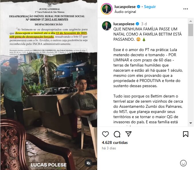O deputado estadual Lucas Polese (PL-ES) tem acompanhado o caso da família Bettim com visitas regulares. Durante um dos encontros, a família apresentou as escrituras do terreno e notas que comprovam a venda de seus produtos. Os atuais proprietários, com idades entre 65 e 70 anos, herdaram a fazenda de seus pais.