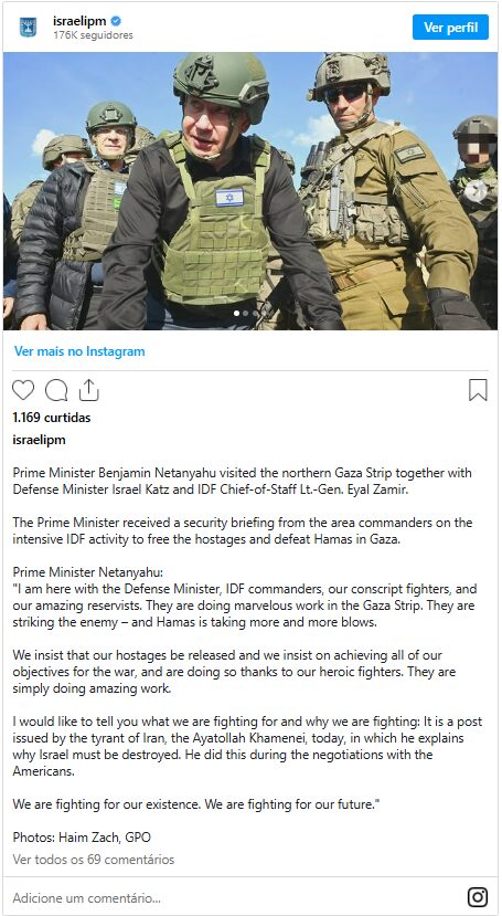 A fala dizia respeito à pressão que ele vem sofrendo por parte da sociedade israelense para que encerre o conflito e ceda às exigências do grupo terrorista Hamas, para a libertação dos 59 reféns ainda sob controle dos extremistas.