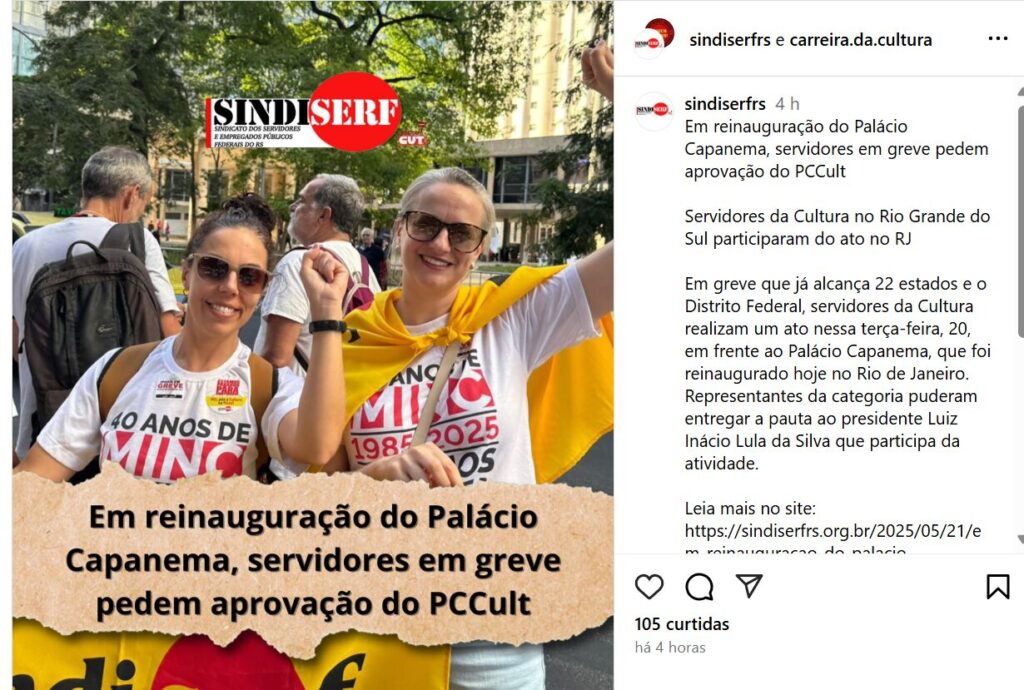 Servidores do Ministério da Cultura fizeram um protesto em frente ao edifício durante a cerimônia de reinauguração. A categoria está em greve nacional desde 29 de abril pela implantação de um plano de carreiras, reivindicada desde o primeiro mandato de Lula, quando Gilberto Gil era o chefe da pasta.