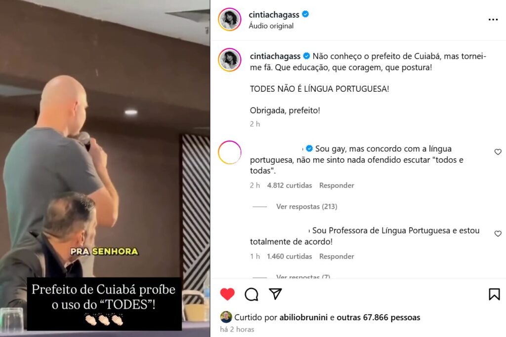 O episódio ganhou força na manhã desta sexta-feira (01) ao ser abordado por perfis grandes como o da especialista em comunicação e educadora Cintia Chagas. Ela defendeu o prefeito e reforçou que o pronome neutro ‘Todes’ não existe. “Todes não é língua portuguesa”.