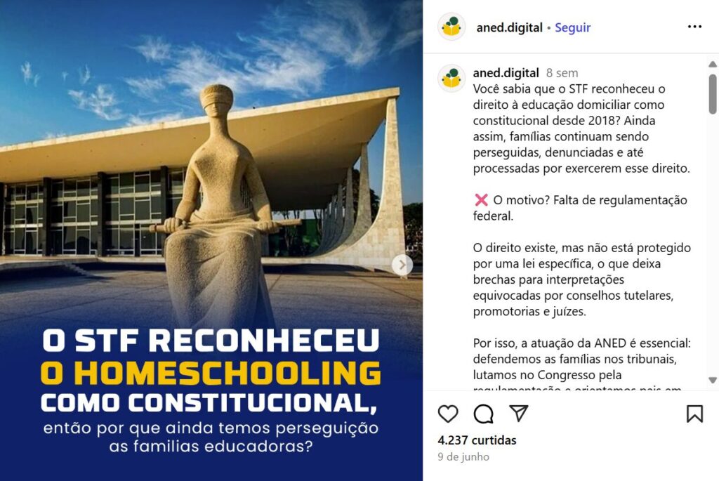 “A educação domiciliar moderna ressurge em maior número de praticantes nos Estados Unidos no final da década de 1970, não como reação à segregação racial, mas como crítica à ineficiência do sistema escolar estatal, à perda de liberdade educacional e ao fracasso das reformas escolares”, explica.