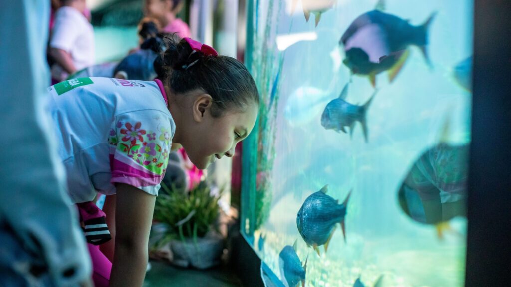 A pequena Ana Beatriz, de 9 anos, afirmou que amou conhecer os peixes do aquário, especialmente “os pequenininhos”. Ela também compartilhou as regras de visitação para garantir o bem-estar dos animais: “Temos que fazer silêncio, não podemos usar flash, devemos falar baixo e não bater no vidro. Os peixes aqui são bem tratados e se alimentam. Amei conhecer os peixes e quero voltar mais vezes.”