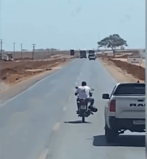 Um vídeo que circula nas redes sociais mostra o momento em que um homem identificado como Valdir Sabino de Novaes, 52 anos, trafegava na rodovia BR-163, em Sorriso (420 km de Cuiabá). Minutos depois, ele morreu em uma batida entre a motocicleta que pilotava e uma carreta neste domingo (17).