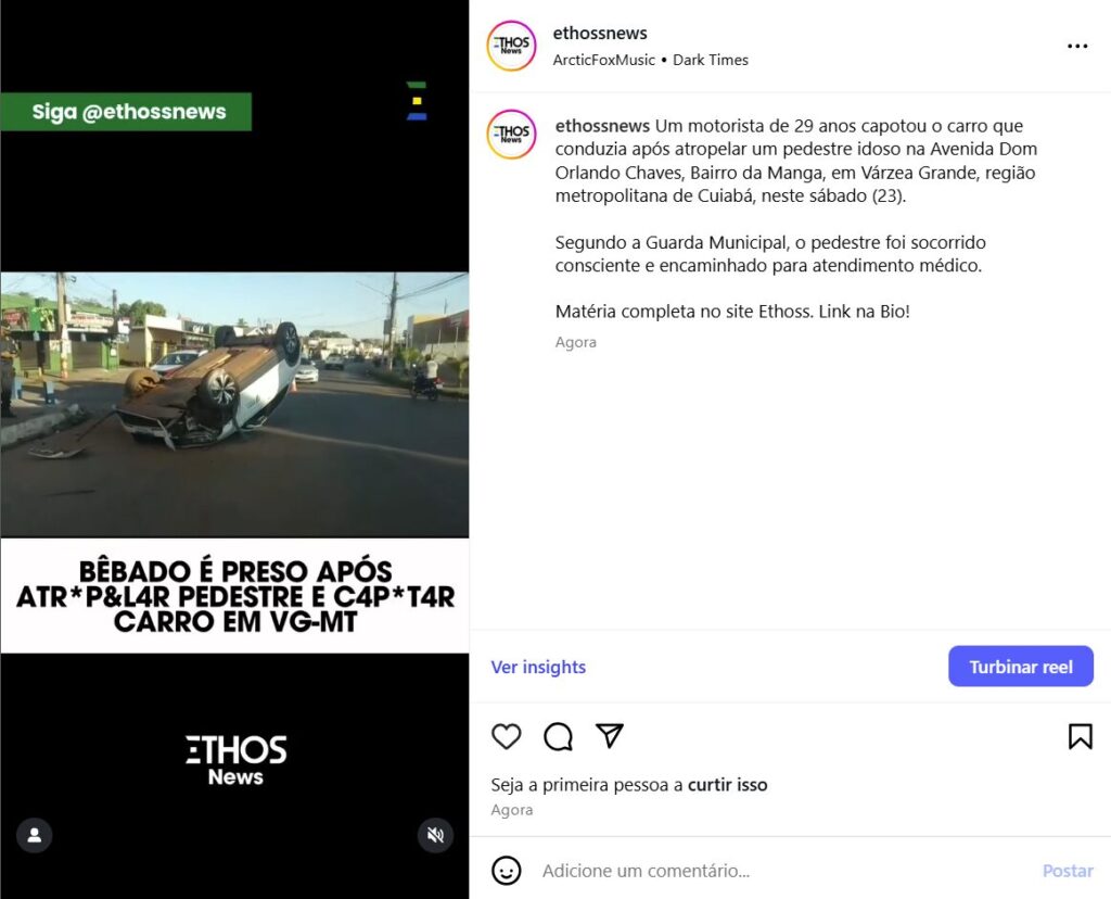 Um motorista de 29 anos capotou o carro que conduzia após atropelar um pedestre idoso na Avenida Dom Orlando Chaves, Bairro da Manga, em Várzea Grande, região metropolitana de Cuiabá, neste sábado (23).