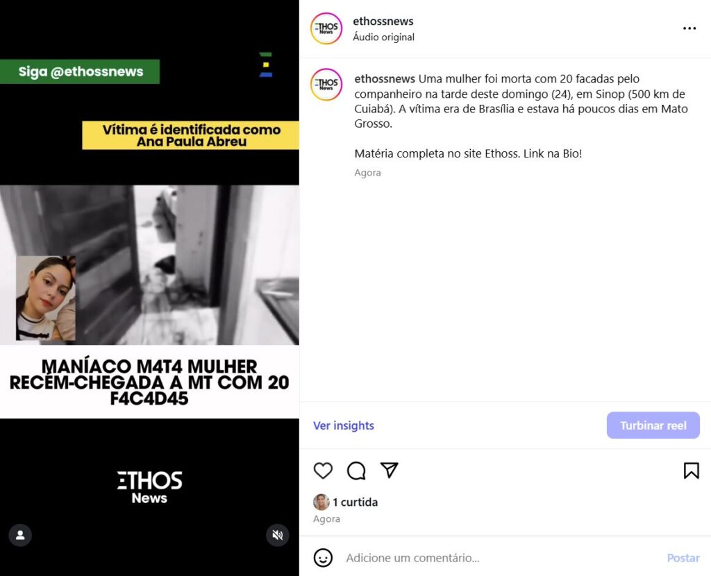 Uma mulher foi morta com 20 facadas pelo companheiro na tarde deste domingo (24), em Sinop (500 km de Cuiabá). A vítima era de Brasília e estava há poucos dias em Mato Grosso.