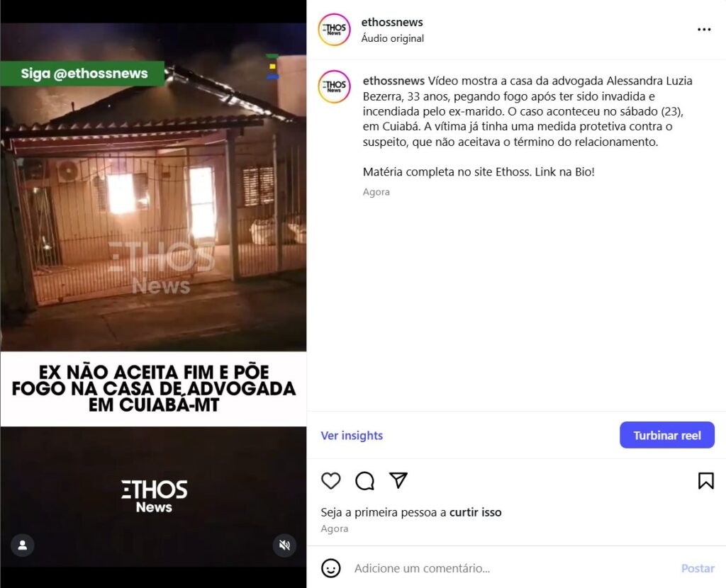 Vídeo mostra a casa da advogada Alessandra Luzia Bezerra, 33 anos, pegando fogo após ter sido invadida e incendiada pelo ex-marido. O caso aconteceu no sábado (23), em Cuiabá. A vítima já tinha uma medida protetiva contra o suspeito, que não aceitava o término do relacionamento.