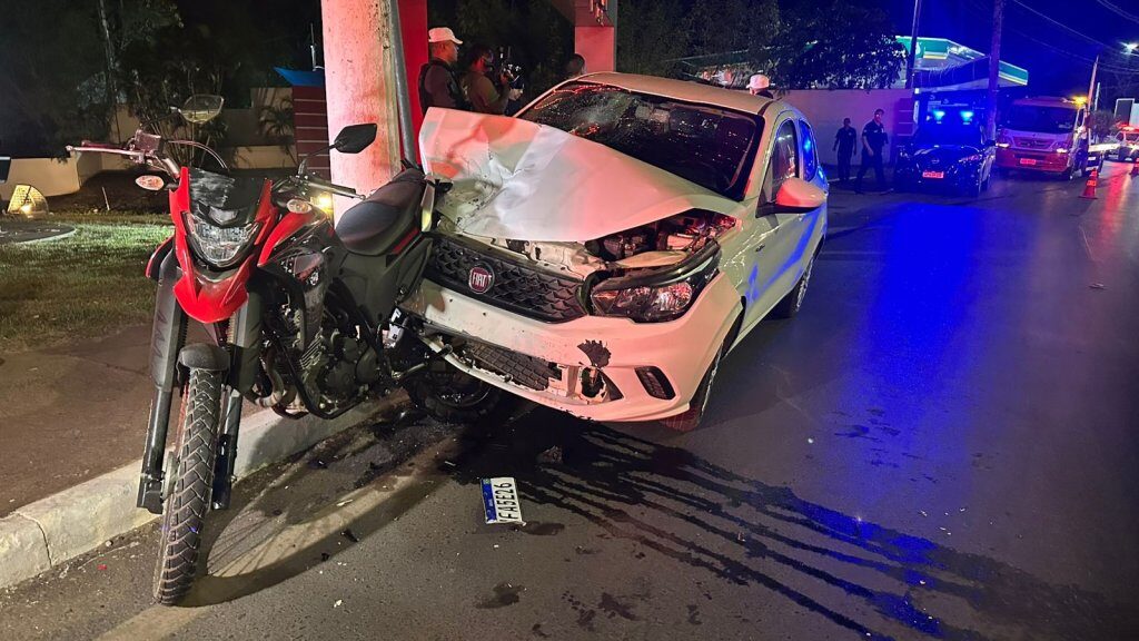 Um policial militar da reserva, que não teve o nome divulgado, foi preso após bater o carro em outro veículo e em uma motocicleta na Avenida Miguel Sutil, em Cuiabá, na noite desta terça-feira (26). O suspeito ainda agrediu uma jornalista com um soco no rosto e ameaçou outro repórter.