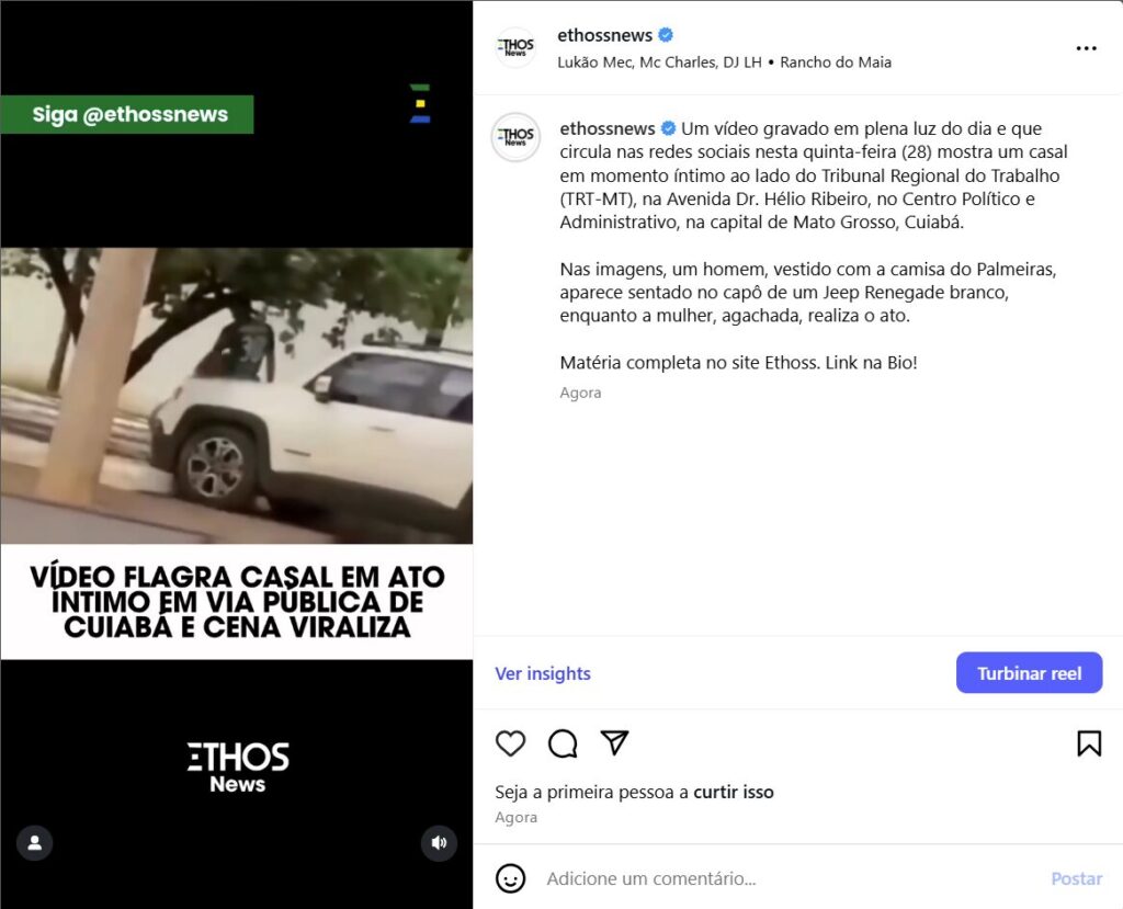 O vídeo viralizou rapidamente nas redes sociais e gerou repercussão pela ousadia da cena, registrada a poucos quilômetros de diversos motéis localizados na capital mato-grossense.