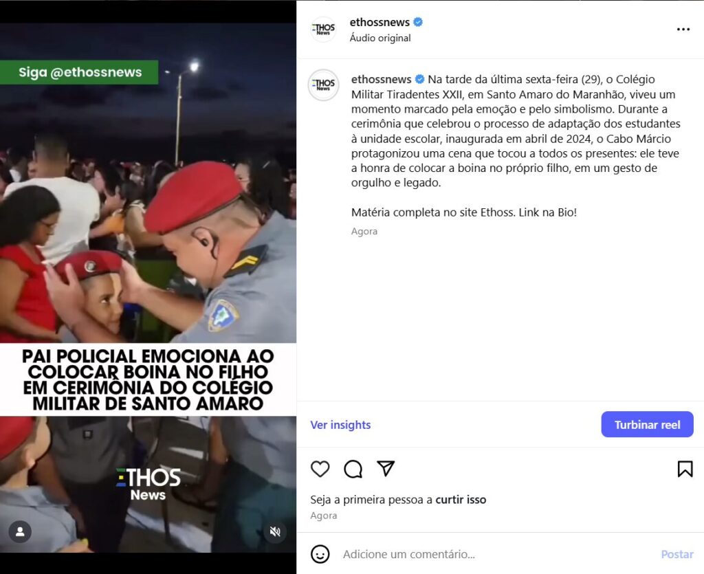 Na tarde da última sexta-feira (29), o Colégio Militar Tiradentes XXII, em Santo Amaro do Maranhão, viveu um momento marcado pela emoção e pelo simbolismo. Durante a cerimônia que celebrou o processo de adaptação dos estudantes à unidade escolar, inaugurada em abril de 2024, o Cabo Márcio protagonizou uma cena que tocou a todos os presentes: ele teve a honra de colocar a boina no próprio filho, em um gesto de orgulho e legado.