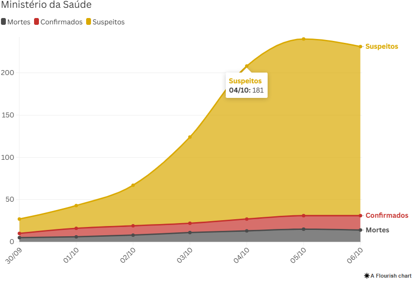 Em relação às mortes, o boletim informa dois registros confirmados em São Paulo e 12 ainda sob investigação. Esses casos em apuração estão distribuídos entre Mato Grosso do Sul, Pernambuco, São Paulo, Paraíba e Ceará.