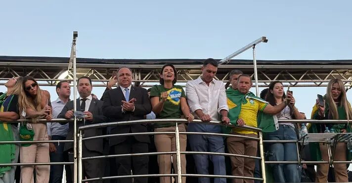 “Assim como ele não abaixou a cabeça, nós também não vamos abaixar a nossa”, disse Flávio, mencionando o seu pai, que cumpre prisão domiciliar desde 4 de agosto. “Cada vez que eu vou lá, por mais cansado que eu esteja, eu volto animado. Saio de lá convicto, cheio de energia, para continuar lutando por este Brasil, por cada um de vocês, pelos nossos filhos e pelas próximas gerações.”