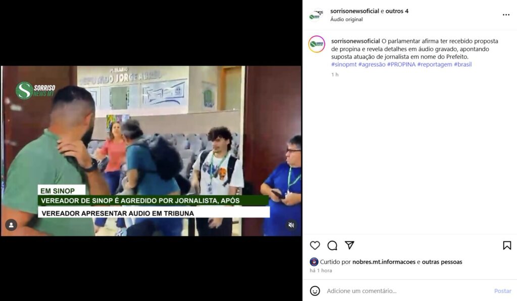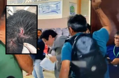 Um vídeo que circula nas redes sociais mostra o momento em que o advogado criminalista e vereador por Sinop (478 km de Cuiabá), Marcos Vinicius (PSDB), foi agredido pelo jornalista Daniel Trindade na Câmara Municipal na segunda-feira (6). Ele sofreu um corte na cabeça e ficou com o rosto sangrando dentro das dependências do Legislativo.