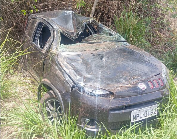 Um carro capotou na manhã deste sábado (25) na MT-344, km 40, zona rural de Dom Aquino, sentido Campo Verde, em Mato Grosso. O veículo, um Fiat Uno preto, saiu da pista e capotou várias vezes após o motorista perder o controle em uma curva.