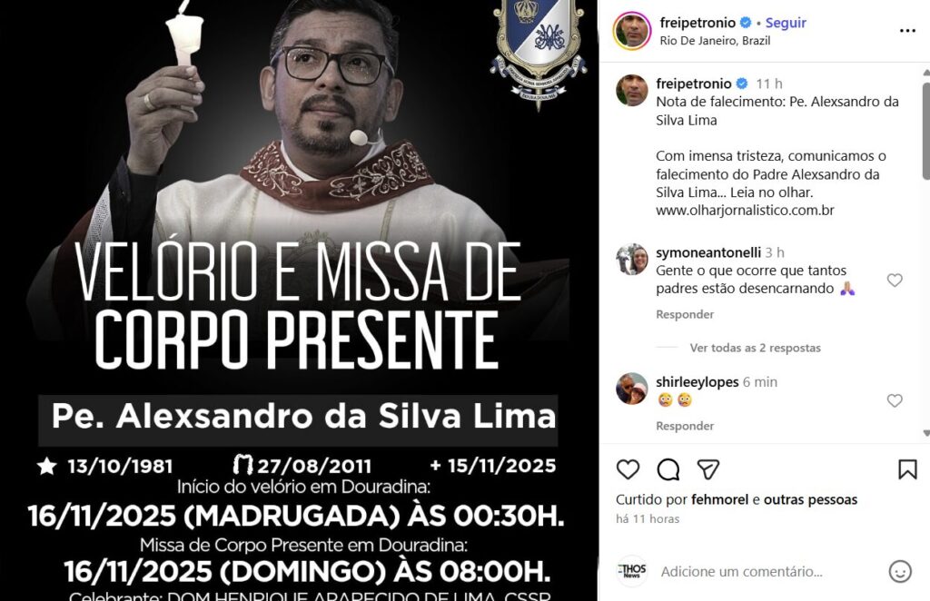 Padres e instituições católicas também lamentaram a morte do religioso.