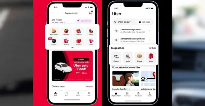 Na primeira fase, clientes do iFood passam a solicitar corridas da Uber diretamente pelo aplicativo. A partir de dezembro, o app da Uber também exibirá entregas de comida, mercado e outros itens sob a operação do novo parceiro. O recurso já está disponível para parte dos usuários em Belo Horizonte. A expansão vai ocorrer gradualmente até o fim de janeiro de 2026.
