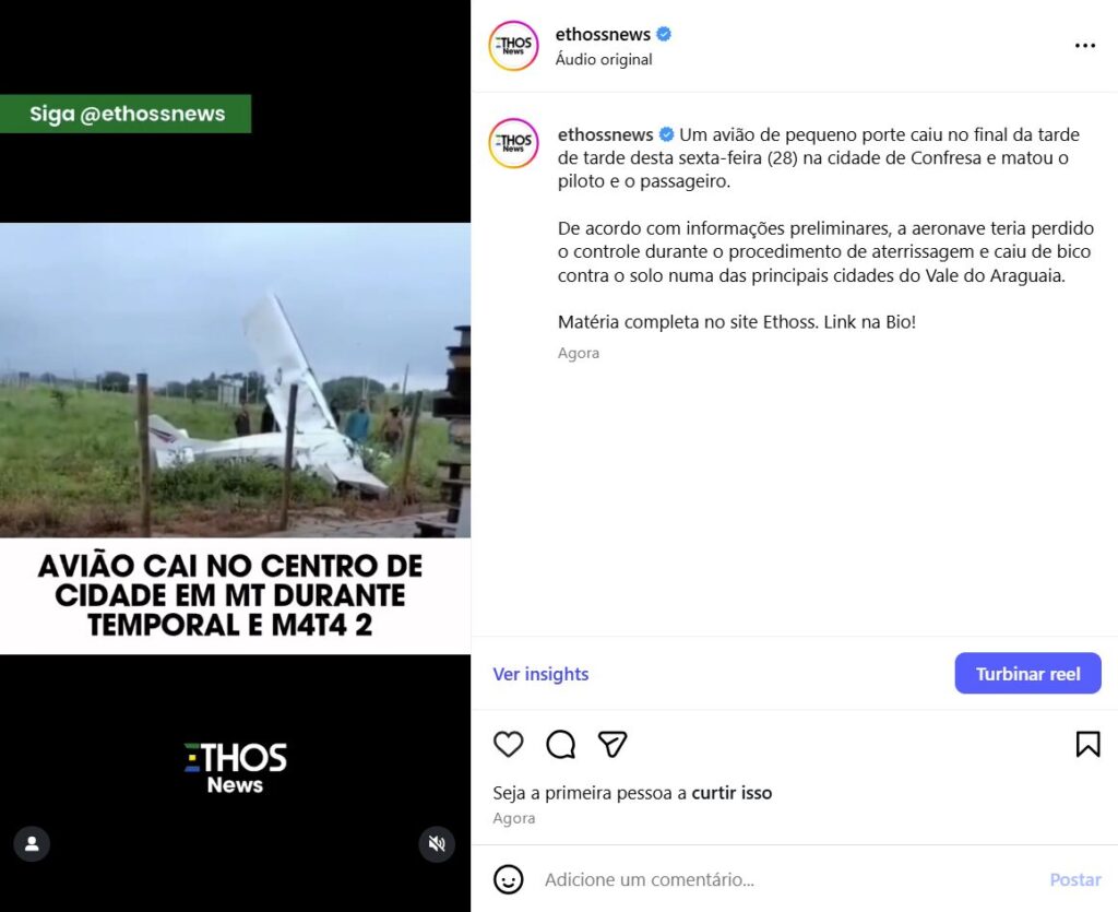 Um avião de pequeno porte caiu no final da tarde de tarde desta sexta-feira (28) na cidade de Confresa e matou o piloto e o passageiro. De acordo com informações preliminares, a aeronave teria perdido o controle durante o procedimento de aterrissagem e caiu de bico contra o solo numa das principais cidades do Vale do Araguaia.