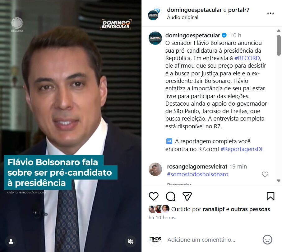 No mesmo contexto, Flávio destacou o papel relevante do governador de São Paulo, Tarcísio de Freitas, nas eleições de 2026. “Tarcísio é um craque”, disse. “Tarcísio é o camisa 10 dessa seleção, desse time que nós temos.”