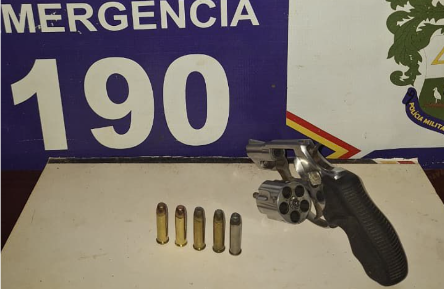 Na verificação, a guarnição localizou um revólver calibre .38, que estava desmuniciado. No mesmo compartimento, foram encontradas cinco munições intactas compatíveis com a arma.