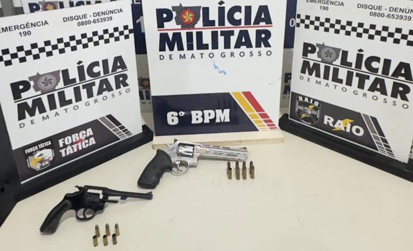 Ao todo, foram apreendidos dois revólveres, munições de calibres .32 e .357, além de um aparelho celular. Todos os envolvidos e os materiais apreendidos foram encaminhados para a 1ª Delegacia de Polícia Judiciária Civil de Cáceres, para as devidas providências que o caso requer.