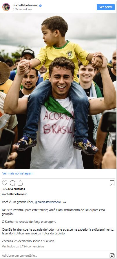 O deputado agradeceu o encorajamento da ex-primeira-dama. “Obrigado por tudo, Michelle. Deus conosco!”
