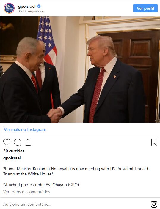 Na reunião com Netanyahu, Trump declarou que o Oriente Médio vive um momento de paz. A afirmação foi publicada na rede Truth Social. Ambos discutiram os limites estabelecidos por EUA e Israel nas negociações sobre o programa nuclear iraniano.
