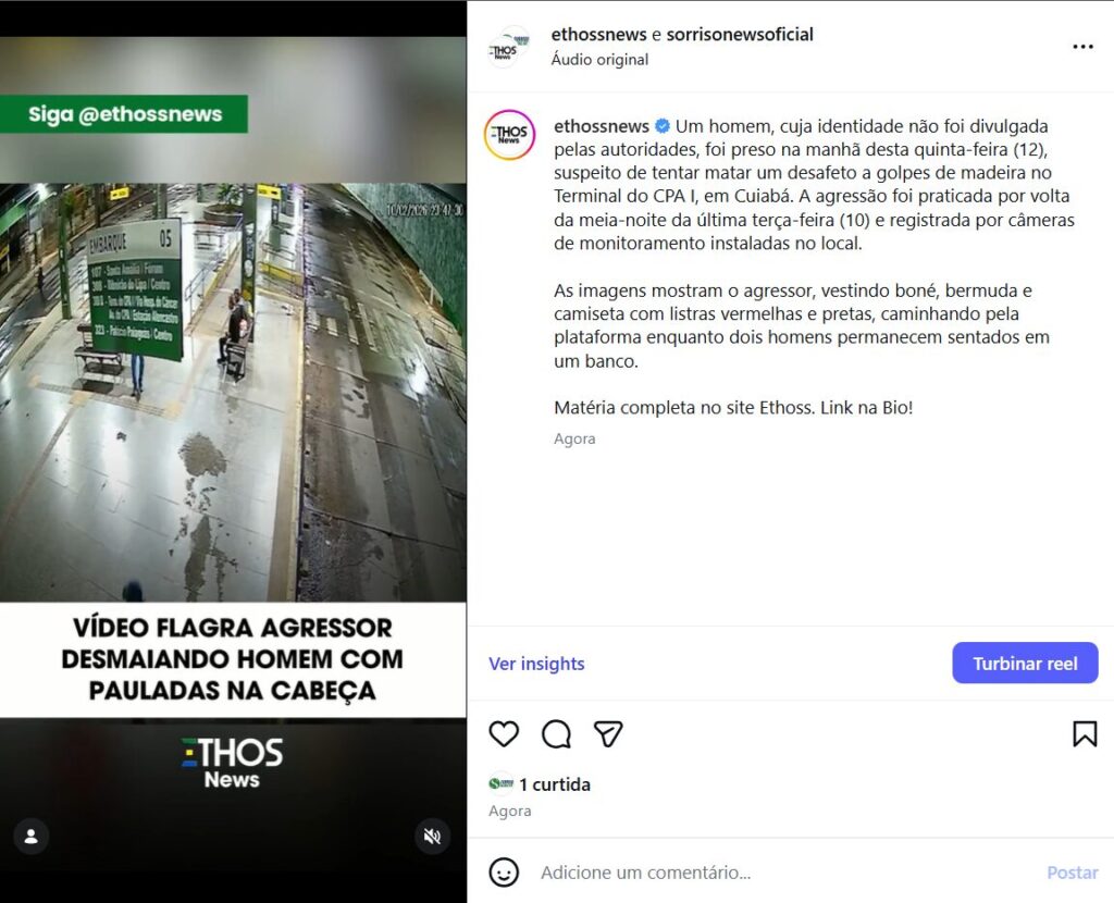 Um homem, cuja identidade não foi divulgada pelas autoridades, foi preso na manhã desta quinta-feira (12), suspeito de tentar matar um desafeto a golpes de madeira no Terminal do CPA I, em Cuiabá. A agressão foi praticada por volta da meia-noite da última terça-feira (10) e registrada por câmeras de monitoramento instaladas no local.