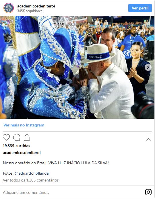 Conforme já noticiado, a Acadêmicos de Niterói recebeu ao menos R$ 9,6 milhões em recursos públicos para o desfile deste ano. O presidente da escola, Wallace Palhares, esteve no Palácio do Planalto pelo menos duas vezes em outubro de 2025. Janja chegou a considerar desfilar pela escola, mas desistiu às vésperas da apresentação.