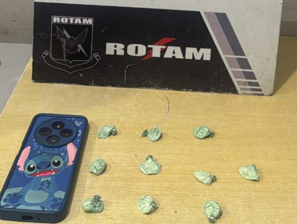 Em uma segunda ação, durante patrulhamento ostensivo no bairro São Roque, os policiais flagraram três pessoas em atitude suspeita. Um dos homens tentou se esconder ao perceber a presença policial. Na abordagem, foram localizadas dez porções de cocaína com um dos suspeitos.