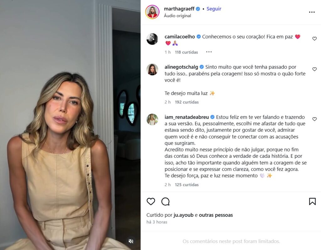 A declaração foi publicada por Martha por volta das 13 horas em seu perfil no Instagram, onde reúne mais de 700 mil seguidores. No vídeo, ela disse que decidiu se manifestar não para responder críticas ou tentar convencer quem já a julgou, mas para “falar exatamente o que aconteceu” e apresentar sua versão dos fatos. Mais cedo, Martha divulgou uma nota escrita sobre o assunto.