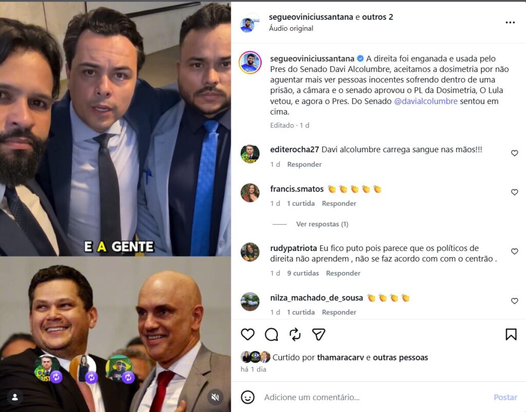 Uma agenda travada no Congresso Nacional voltou ao centro do debate político após a visita do influenciador digital e pré-candidato a deputado federal Vinicius Santana à Câmara dos Deputados, acompanhado dos advogados Jeffrey Chiquini e Hélio Júnior. O grupo cobra do presidente do Senado a inclusão em pauta da análise do veto presidencial ao projeto da dosimetria das penas relacionadas aos atos de 8 de janeiro.