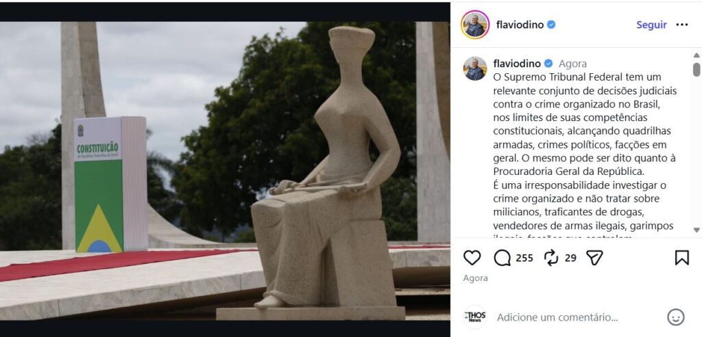No texto, Dino sustentou que o STF e a PGR possuem um “relevante conjunto de decisões judiciais contra o crime organizado no Brasil”.